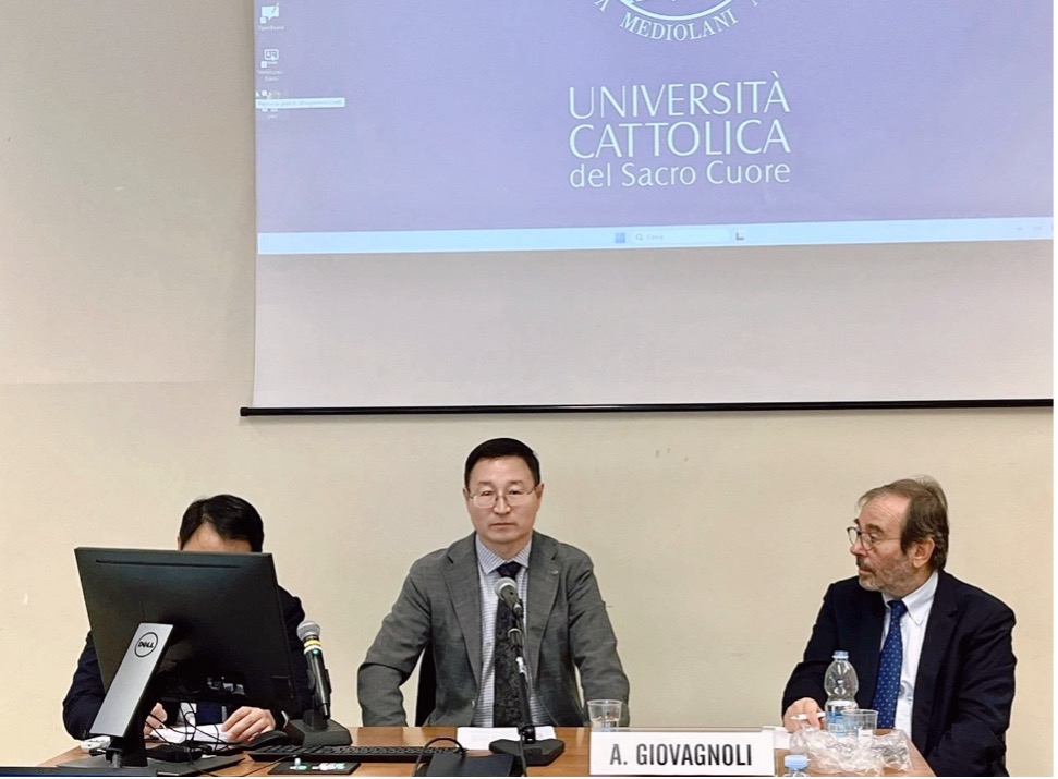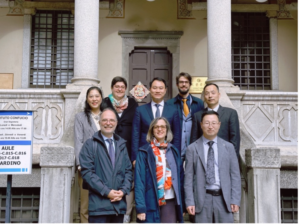 11月4日,代表团参加由米兰圣心大学世界历史研究中心与圣心孔子学院联合举办的“中欧文化交流史”工作坊。本次工作坊由意大利历史学会会长、圣心大学风车动漫 主任、孔子学院科学委员会委员乔万里教授主持,圣心孔子学院意方院长竺易安、圣心大学外语系中文项目负责人兼孔子学院教学顾问夏慕华、孔子学院中方院长梁清及部分孔子学院教师、圣心大学米兰校区相关专业师生参加了此次活动。