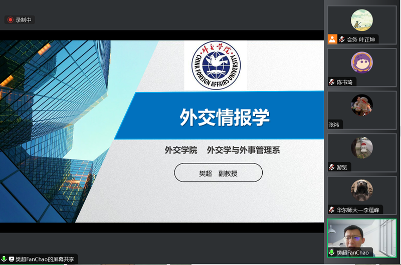 樊超老师随后介绍了外交情报的三大来源,并讲授在外交工作中如何运用科学技术和交流技巧获取有益的信息、利用经验常识和多方对比甄别公开情报的真伪,从而撰写出兼具业务、智库和理论层次的调研报告。樊老师列举了几则实例,就情报所隐含的信息与大家进行交流,同学们在思考与讨论中对外交情报的分析处理有了切身的体会。