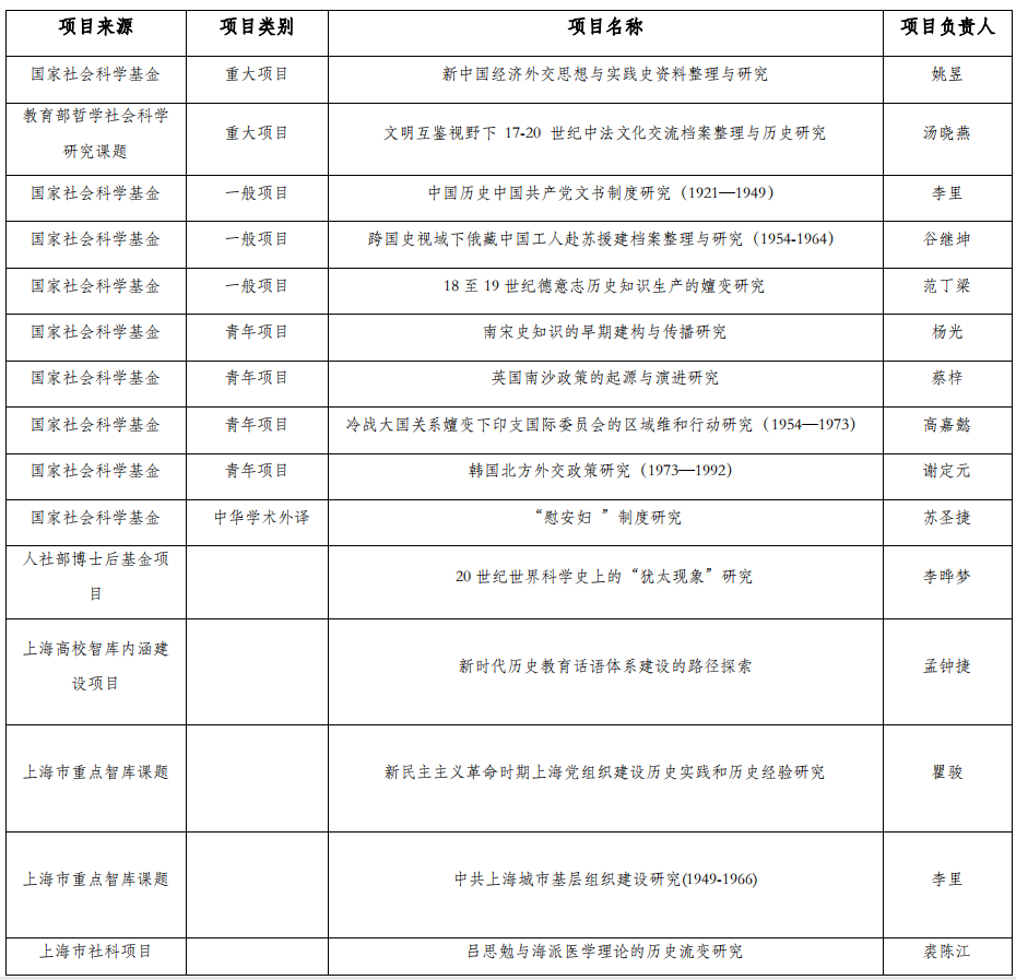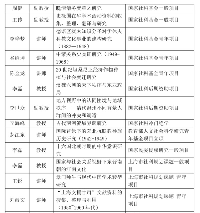 省部级项目 4项 | 上海市教委1项 | 重大项目 1项 | 王东、李孝迁: 重构中国:中国现代史学的知识谱系(1901—1949) | ||