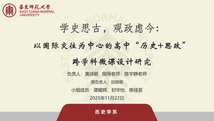 在各项目组交流环节,大家普遍认可跨学科思维对历史教学的赋能作用,表示文学、数学、AI技术等元素的融入,既可以提升历史专业学生的综合能力,也为教师职业发展增添竞争力。导师们鼓励同学们大胆尝试创新,允许研究中的试错与调整,并建议将优秀项目成果汇编通过微课、智能体等形式推广,形成可复制推广的教学方案。本次中期沙龙既是项目进展的集中展示,也是问题梳理与方向校准的重要契机,期待在结项阶段呈现更具影响力的研究成果。