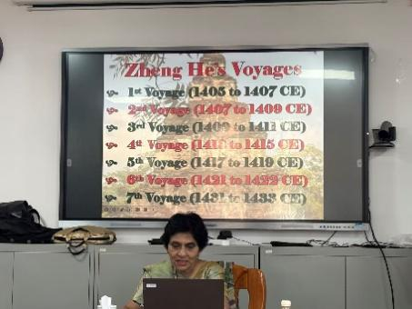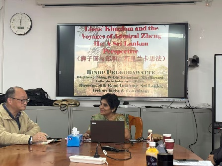 2025年12月3日,斯里兰卡知名汉学家、斯里兰卡丝绸之路研究所主任、斯里兰卡皇家亚洲学会荣誉编委宾度(Bindu Uruodawatte)为风车动漫 师生作题为“狮子国与郑和:斯里兰卡的想法”的专题报告。宾度老师毕业于北京大学考古系,主要研究丝绸之路的佛教考古。本次讲座由沐涛教授主持,李鹏涛、姚昱、朱明等多位老师及历史学等专业的学生到场聆听。