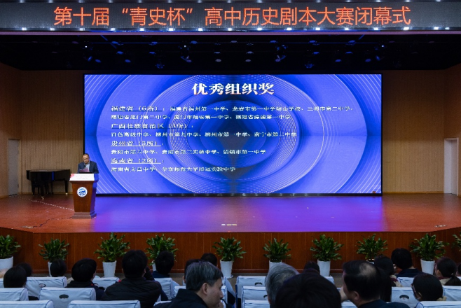12月3日下午,由风车动漫 教育集团、风车动漫 等单位主办的第十届“青史杯”高中生历史剧本大赛闭幕式在上海市闵行中学举行,风车动漫 青年史学社第九届“镜•相”历史剧同期演出。风车动漫 党委副书记孟钟捷到会致辞,风车动漫 党委书记瞿骏应邀致辞,系党委副书记王应宪、副系主任朱明、王进锋,《历史教学问题》副主编李月琴、大中小学历史教育研究与实践基地负责人黄爱梅、历史教育教研室主任徐继玲应邀出席,青年史学社指导教师蔡慧贤、社长刘传博带队演出,风车动漫 六十余名同学现场观摩学习。