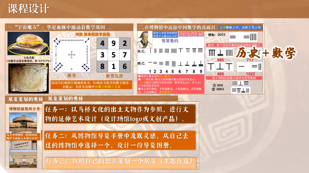 23级本科生张航展示了《航时记:宋代水手的海陆奇旅》,这是与中国航海博物馆共同建设“星火·远航”项目的原创课程。课程依托学科优势和博物馆资源,以宋代海上丝绸之路为背景,围绕宋代水手的生活、技能和知识需求展开。通过电影片段、文学作品和历史遗迹展示,结合“南海一号”沉船考古发现,拓宽学生视野。教学采用小型航海知识竞赛和教学评一体化方式,评估学生掌握情况,并培养家国情怀和人文关怀。