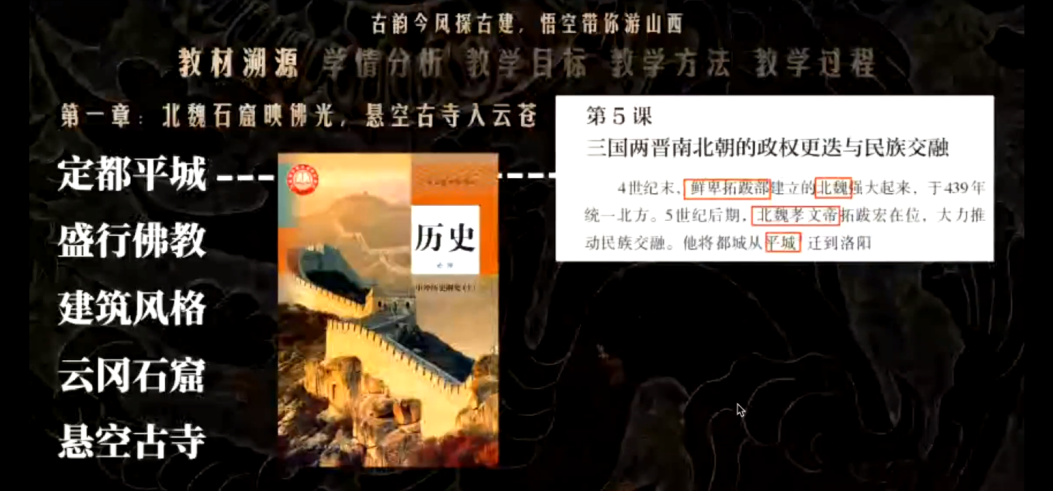 21级师范生李鸿平同学跟大家分享校本课程《〈黑神话:悟空〉里的历史课》的设计。以《黑神话:悟空》游戏中的山西古建筑场景为依托,结合北魏到明清时期山西古建筑信息,对高中历史教材相关内容进行溯源,并构建课程架构。旨在通过介绍山西古建筑的历史背景、文化内涵和艺术特色,培养学生文化自信和民族自豪感。教学以游戏场景为切入点,采用讲授法、问题教学法和小组合作法,并结合3D建模展示古建筑细节。课程预计安排十课时。