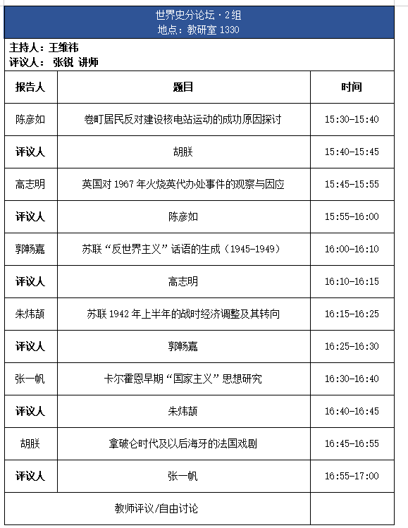 论坛议程 | 会通与专精:首届“人文化成”研究生论坛之历史专场