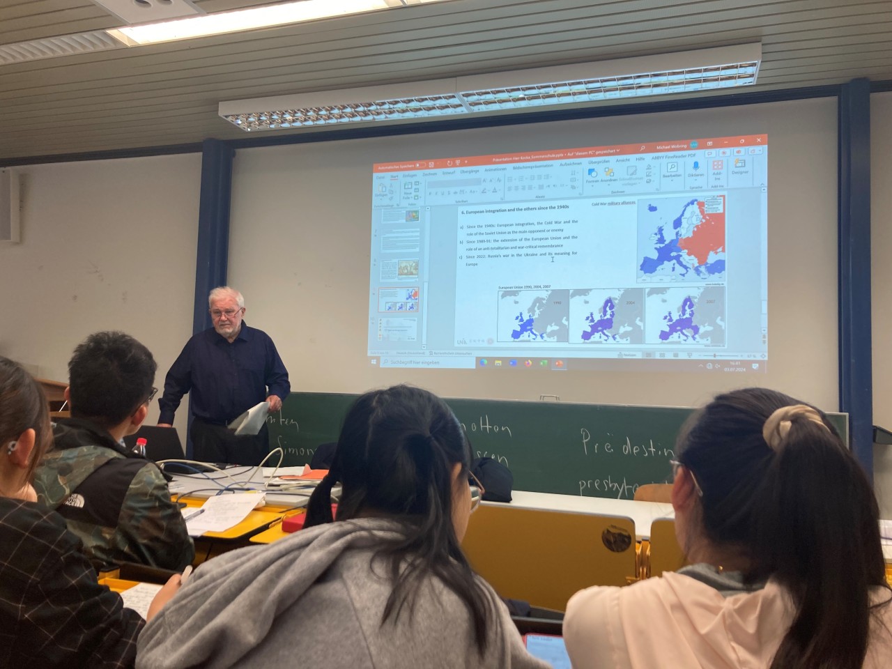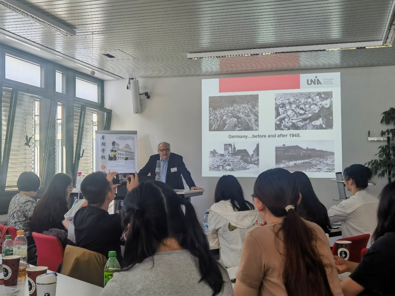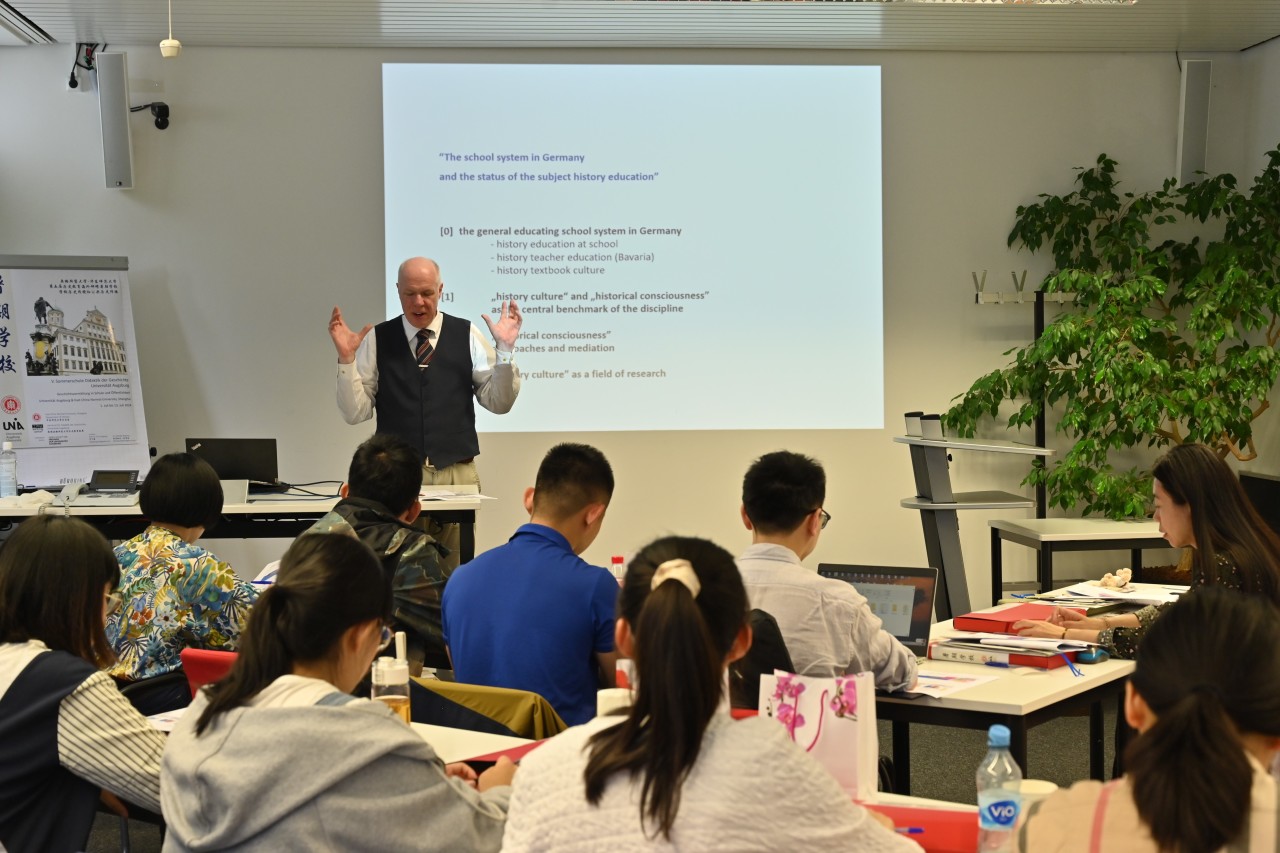 下午,米夏埃尔·沃布林博士带来讲座“德国的学校体系和历史学科教育的地位”。他为大家详细介绍了德国的教育体制、历史教师培养目标和历史教育现状。在讨论环节,学员们就“德国对于近代史的批判反思”“公众史学与中学教育的结合”“学校历史教育对于两次世界大战的表述”以及“历史教材对于社会现象的即时更新”等问题展开交流。讲座后举行了“中国与德国的历史教师教育”工作坊,中方学员与奥格斯堡大学学生在丰富的互动活动中增进了解。