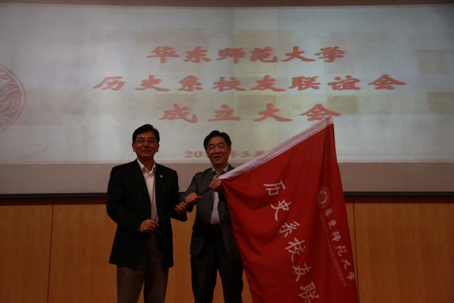郭为禄向历史系校友联谊会秘书长李学昌授旗,历史系校友联谊会会长王斯德和郭为禄为历史系校友联谊会揭牌。郭为禄向历史系校友联谊会的荣誉会长、会长、副会长、秘书长颁发了聘书。随后,王斯德和李学昌分别进行了发言。