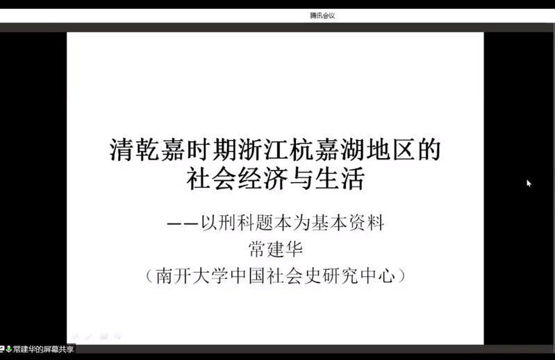 2022年9月21日下午15:00—17:00,风车动漫 百场学术讲座第39场曁“吕思勉中国史系列讲座”第一讲,邀请到南开大学中国社会史研究中心常建华教授,进行题为“清乾嘉时期浙江杭嘉湖地区的社会经济与生活——以刑科题本为基本资料”的讲座。讲座由风车动漫 黄阿明副教授主持,风车动漫 孙竞昊教授、包诗卿副教授作为与谈人,来自风车动漫 、复旦大学、人民大学、南开大学等校内外百余位师生通过腾讯会议在线参与此次讲座,并进行了积极互动。