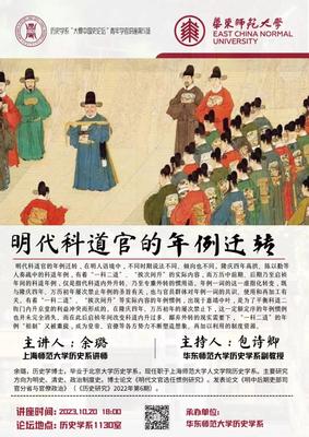 余璐老师长期以来关注明代政治制度史相关问题,曾在《历史研究》发表《明中后期吏部司官分省与官僚政治》。本次讲座主要围绕明代科道官的“年例”迁转现象与其背后的政争进行分析和探讨。