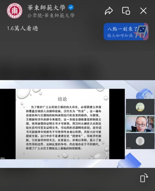讲座结束后,侯旭东教授还在线回答了与会师生的疑问。主持人李文杰教授对侯教授深入简出的讲授表示感谢,并希望与会的同学们能够吸收有益的治学方法。活动在热烈的掌声中圆满落幕!