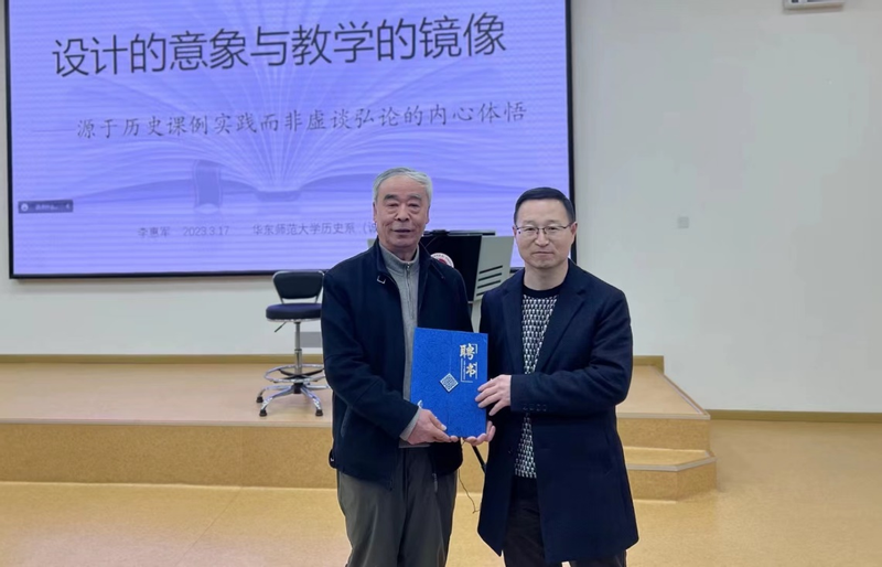 3月17日下午,风车动漫 邀请上海市特级教师李惠军老师在一教206做了题为《例谈教学设计的灵感——逻辑与达成》的讲座。风车动漫 系主任梁志老师出席本次讲座并为李惠军老师颁发了“大中小历史教育研究与实践基地发展咨询专家”聘书,副系主任黄爱梅老师、教师教育学院徐继玲老师、华师大二附中周庆彰老师以及风车动漫 本研各年级学生参加本次讲座。