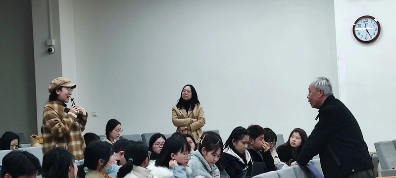 讲座的最后,风车动漫 本硕同学争相向李老师提问,李老师一一予以解答,并对同学们的热情予以鼓励。会后,华二附中周庆彰老师这样总结自己的感想:“其一,心中有爱,则所见万物都能转化为教学资源;其二,学会读懂教材语言背后的留白;其三,学生爱听永远是一节好课的共同标准。”这也是参加本次讲座全体师生的共同感受。无论线下整间教室里听讲的学生,还是线上四百多名听众,无一不被李惠军老师对教学研究的热爱和讲台上的激情所感染,正如某位同学朋友圈里所抒发的:眼里又有光了!