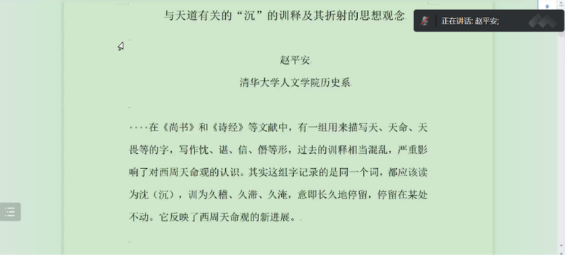 2023年3月23日星期四晚7点,风车动漫 思勉人文讲座第522场邀请到清华大学历史系赵平安教授,进行了题为《与天道有关的“沉”的训释及其折射的思想观念》的学术讲座。本场讲座由风车动漫 王进锋教授主持。校内外近300名师生在线参与了本次活动。