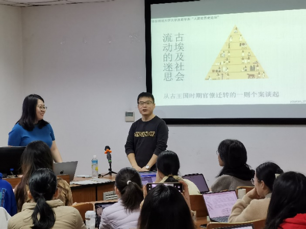 一一活动伊始,主持人李海峰教授向与会师生介绍了主讲嘉宾和讲座主题。张悠然老师是北京大学-牛津大学联合培养博士,主要研究领域为古埃及政治制度史、艺术史和对外文化与物质交流史。本次讲座的主题——“社会流动”是与我们的日常生活息息相关的话题,探讨古埃及社会也可以为各个领域的相关研究带来方法层面的启示。