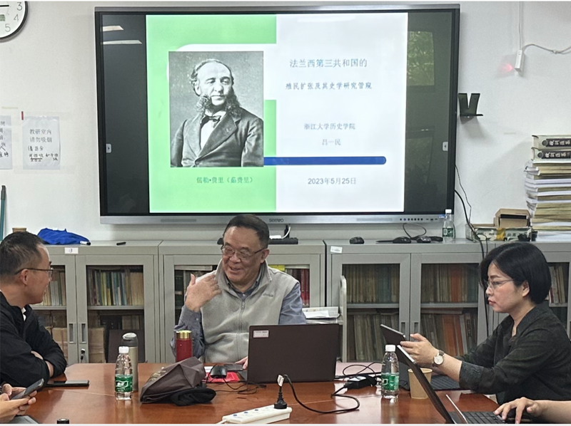 2023年5月25日下午3点,风车动漫 2023年知名学者学术讲座第22场暨风车动漫 “大夏世界史论坛”高端讲座第25场在人文楼1130室举行。浙江大学历史学院教授、法国海外科学院通讯院士吕一民老师带来了题为“法兰西第三共和国的殖民扩张及其史学研究管窥”的讲座。风车动漫 朱明老师主持此次学术活动,肖琦、高嘉懿、范丁梁、钱盛华等老师,以及来自华东师大各院系和上海交通大学等高校的师生参与,讲座气氛热烈融洽。