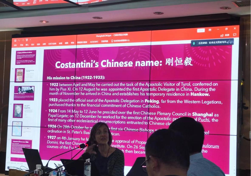 本次讲座围绕20世纪的中意关系,以1946年意大利共和国成立前和成立后为时间节点展开。竺易安教授谈到,20世纪初,意大利人刚恒毅(Celso Costantini)曾作为首位来华宗座代表,为中西间的交流做出了巨大贡献。1923年,他将教廷代表团的正式驻地设在北京,远离西方其他国家的公使馆。1924年,他在上海主持了上海公会议。1926年,他在罗马向教宗庇护十一世举荐了六名中国人,为他们授予主教职位。