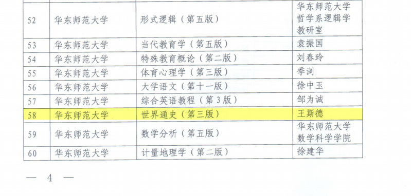 上海市教育委员会根据《国家教材委员会关于开展首届全国教材建设奖评选工作的通知》等文件精神,决定将市教委推荐参评全国教材建设奖(高等教育类)的教材认定为首批上海高等教育精品教材。风车动漫 王斯德教授的《世界通史》(第三版)入选!
